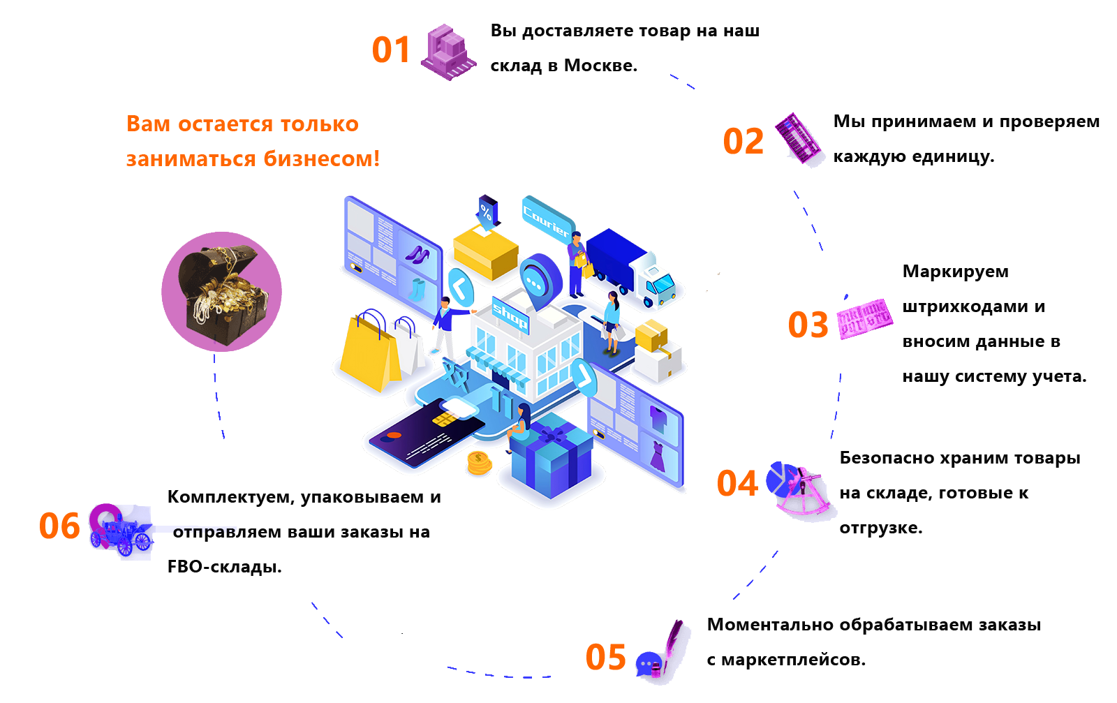 Полный цикл: Весь процесс обработки товара под ключ.
