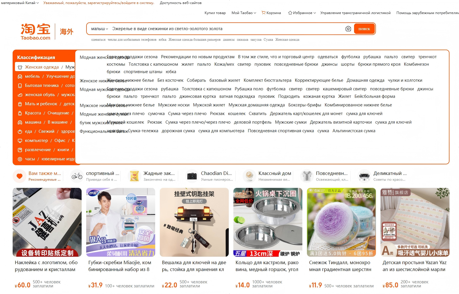 Совет: Используйте короткие и общие запросы (например, «мужские кроссовки» → «男运动鞋»). Так поиск будет точнее.