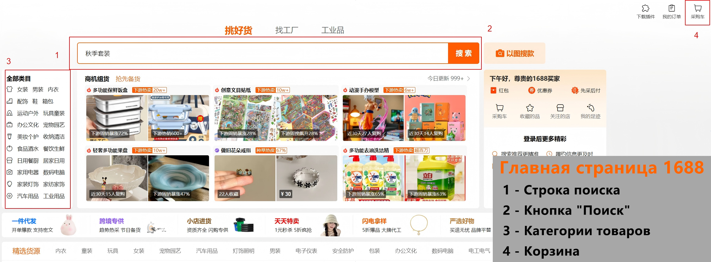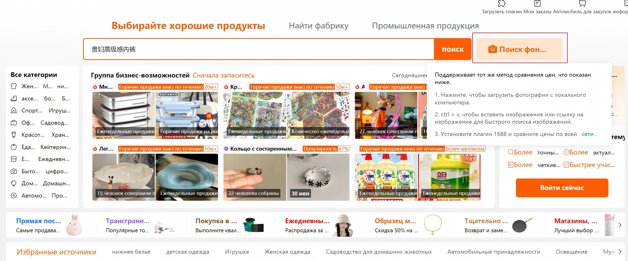 Совет: Используйте короткие и общие запросы (например, «мужские кроссовки» → «男运动鞋»). Так поиск будет точнее.
