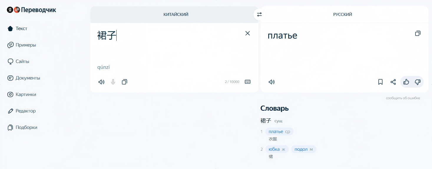 Кликните на ту, которая вам подходит (например, «连衣裙» — платья).